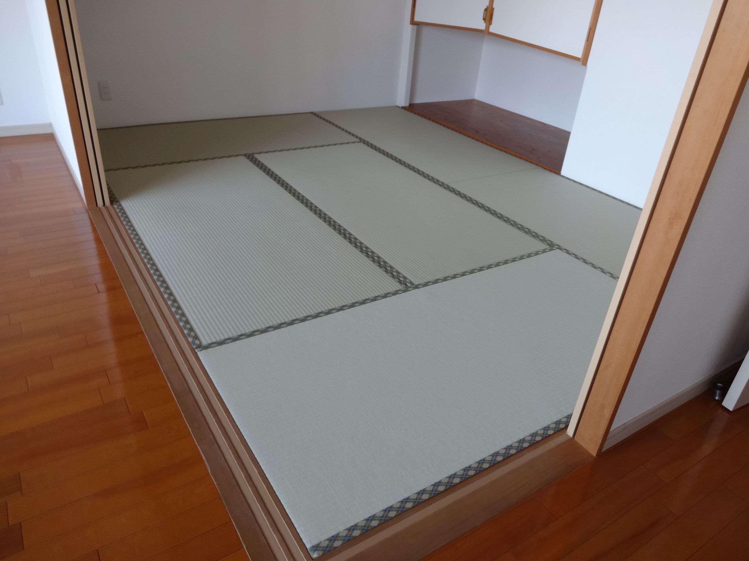 畳縁(へり)も、明るいアーガイル系でオシャレな仕上りになりました。