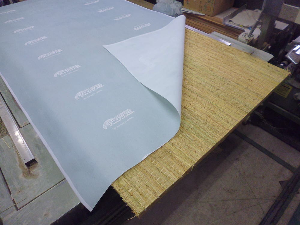 2.製品はシート状になっていて、畳床を包む形で施工します。畳表のすぐ下ですから、
